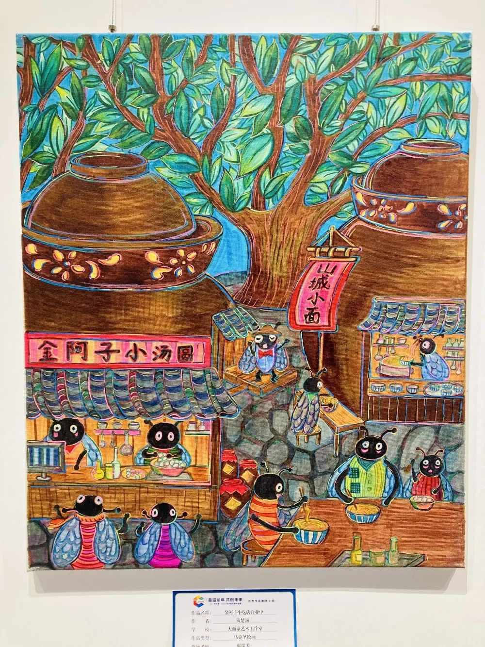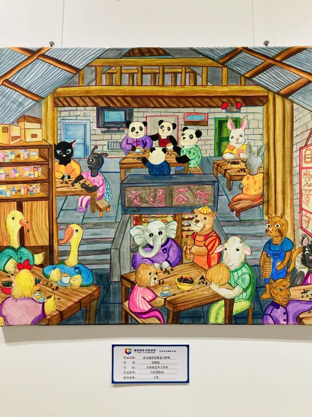 浓郁的巴渝文化特色是本次作品展给人的最深印象。比如开篇提到的那些神奇的重庆“动物”,它们全部来自重庆方言俚语,这些麻辣鲜香的巴渝文化的典型符号,与孩子的童真有趣结合之后,呈现的画面令人印象深刻。